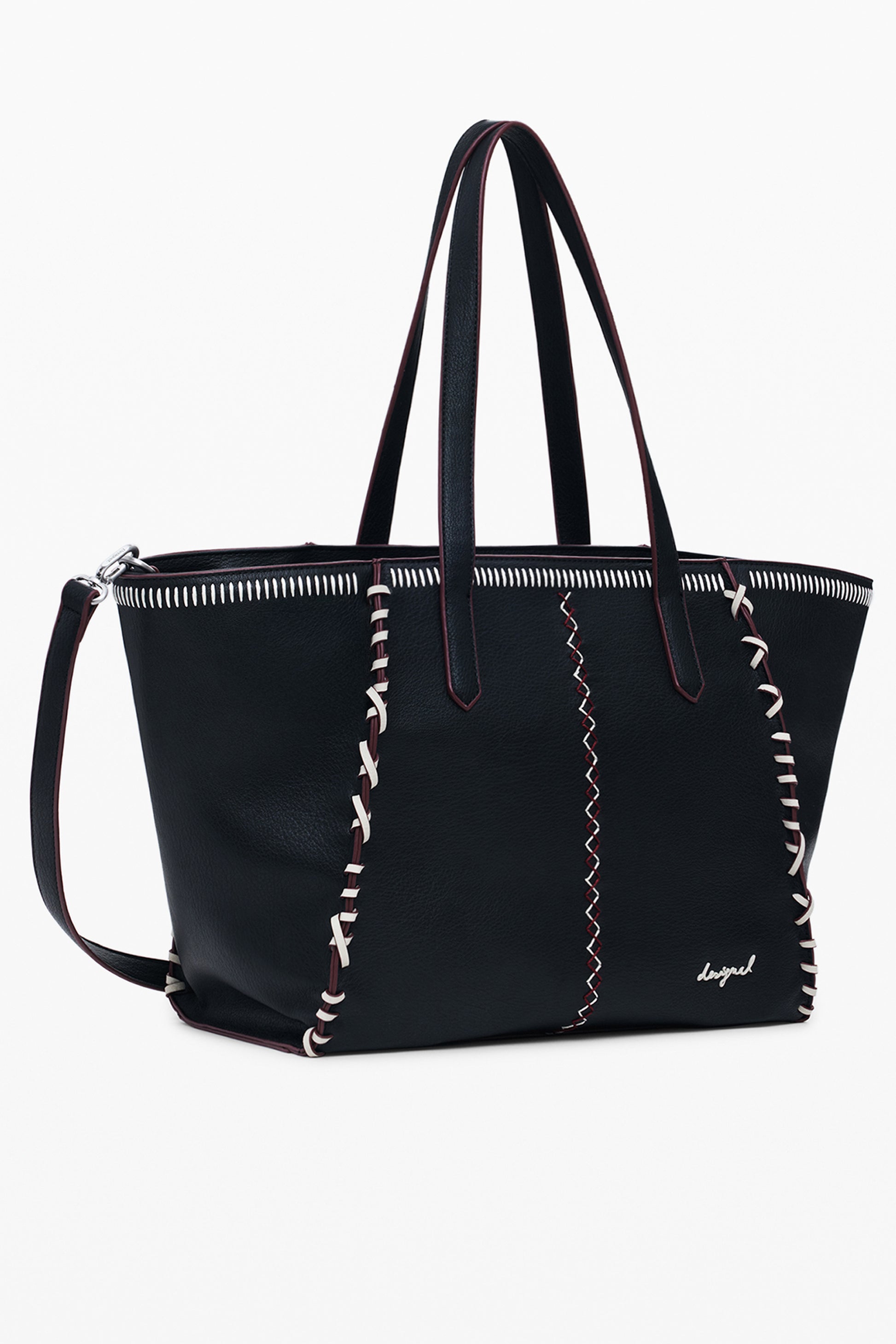 BORSA 2 MANICI A SPALLA, MANHATTAN PESPUNTES GUIMAR, TRACOLLA REGOLABILE E REMOVIBILE, 1 TASCA INTERNA, DETTAGLI A CONTRASTO, CHIUSURA CON ZIP, STAMPA IN RILIEVO, LOGO